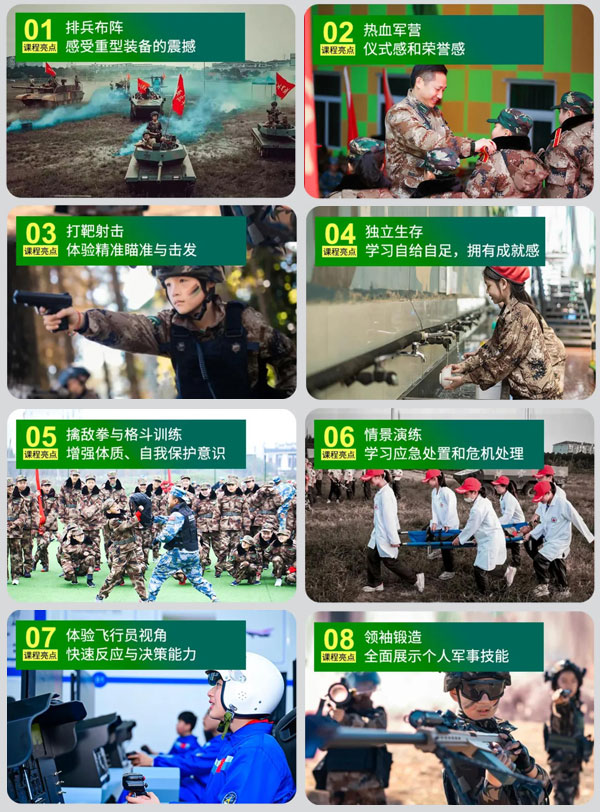 【军事训练】战地野炊、战地救护、野外生存训练、擒敌拳、军事障碍、穿越火线、翻轮胎、CQB战术训练、单个军人徒手操训练、军歌拉练、紧急集合、负重接力、弹药箱、反劫机演练