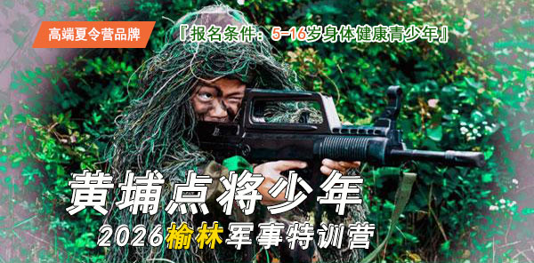 2026X黄埔点将军事营X黄埔点将特种兵营黄埔点将特训营所有课程体系是专为青少年精心设计,引入军事化管理和现代体验式教育理念,结合军队环境、军事氛围、国防教育、武器装备等融入军事拓展训练的精华,最终形成富有挑战性的体验式军事拓展课程。在参与体验的过程中,让营员的心理受到挑战,思想得到启发,在特定的环境中去思考、发现、醒悟,对个人、团队重新认识,增强人与人之间的互信与沟通,致力于帮助青少年在最短的时间内磨练自立、自律、自强的意志,采用军事化封闭式管理,培养成能吃苦、遵守纪律、服从命令遇挫不气馁的良好作风。 自立、自信、自律、感恩、励志、健体、行知、快乐暑假7天-35天,让孩子养成一个好习惯!升级一专业军事训练基地,军事氛围浓厚,营地有:迫击炮、火箭筒、步枪等军事装备。升级二教官团队升级,由专业退役军人预备役组成,专业团队带队执教。升级三红蓝军对抗级战略部署演习,提高学员领导力及自信心