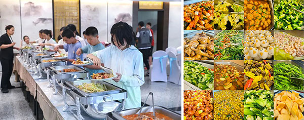 CAMP LIFE营会生活营地设在金海湖景区,三面环水,青山围绕,6.5平方公里的水域,二级备用水源水质,三夫铁人三项赛游泳比赛场地,是练习水上运动的绝佳场所。 生活老师以1:6配比,24小时陪伴孩子,随时解决孩子生活上的问题,关注心理状态,并进行疏解沟通。生活细节全覆盖,陪伴孩子共同生活共同成长。 营会期间,小营员们将入住四星级酒店,平谷区老牌酒店,温馨整洁,营房保证每日消毒,为孩子们的卫生健康保驾护航。 营地餐食,以种类繁多、营养搭配、安全卫生为准则,确保孩子们基础营养的摄取。 同时,营地非常关注孩子们的参营体验。在教学、安全、生活三个方面,制定了一些列保障措施,为孩子们保驾护航。 综合管理保障|MANAGEMENT GUARANTEE 安全保障|SECURITY MEASURES 日常保障|SECURITY MEASURES
