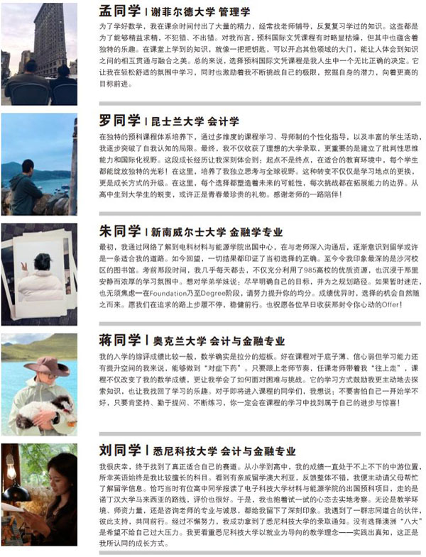 成绩受多国认可,可申请英国、澳大利亚、新西兰等世界知名院校,专业选择多样,升学路径宽广。