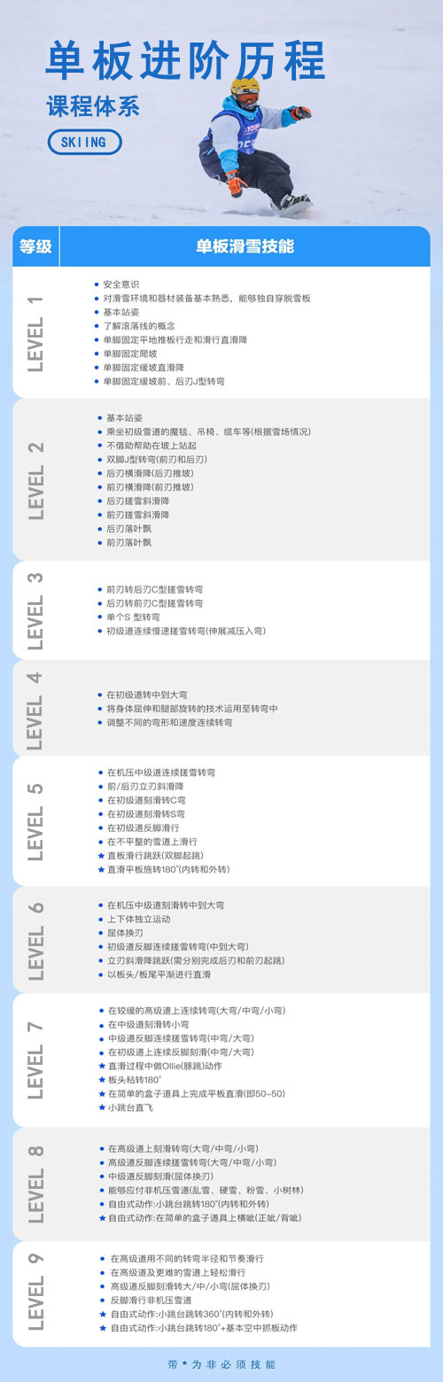上雪前,学员首先将通过严格的「等级测评」,全面评估技能、体质综合基础。