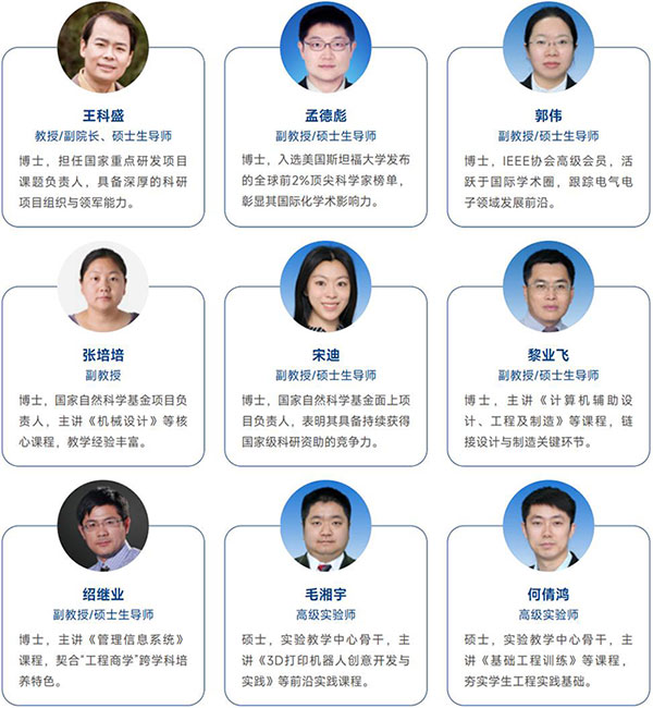 电子科技大学机械与电气工程学院“工程商学”国际学分课程项目汇聚了一支结构合理、学术精湛、富有创新精神的师资队伍。授课教师们深耕于机械工程、电气工程、智能制造、人工智能等前沿领域,注重理论基础与工程实践相结合,致力于培养具备国际视野与创新能力的高素质人才。