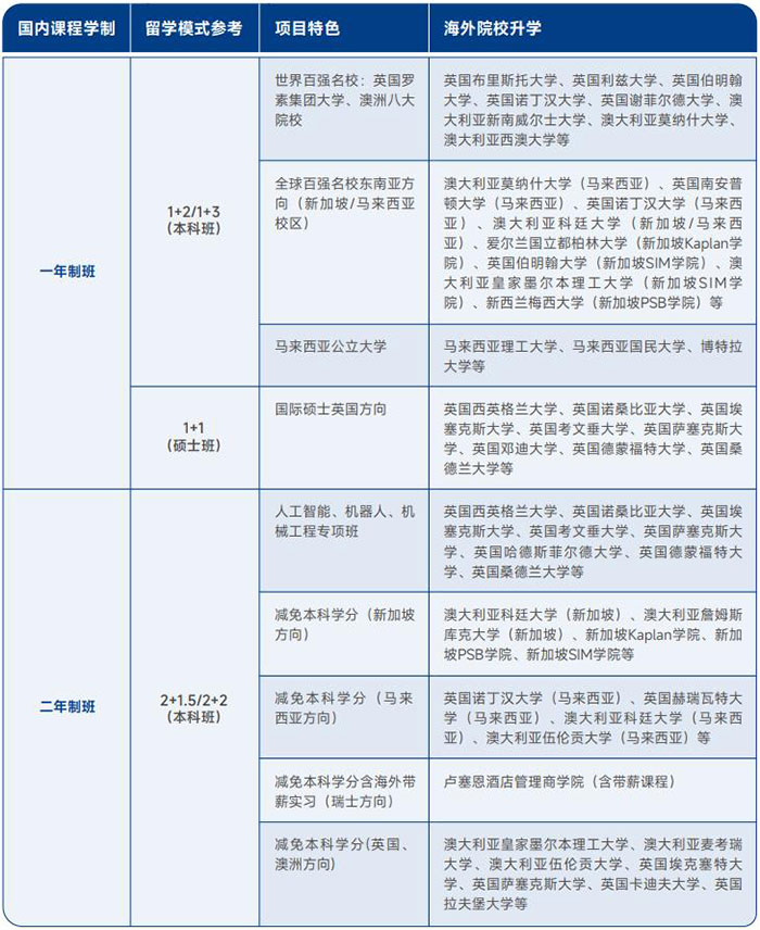 依托与英国、澳大利亚、新加坡、马来西亚、瑞士等多个国家高校的学分互认机制,学生可在留学目的地、学制、费用等方面进行灵活组合与优化选择。部分专项班通过课程设计与学业规划,可实现最高节省约50万元留学总支出,在保障教育品质的同时,显著提升留学性价比。