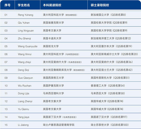 项目合作的多家海外大学认可校内英语测试成绩替代雅思,提供个性化推荐信与学分豁免机会,使学生能够无缝对接海外本科或硕士课程。近年来,通过本项目进入世界百强名校攻读本科或研究生课程学生比例持续攀升,已成为众多学子跃升国际名校的高效平台。