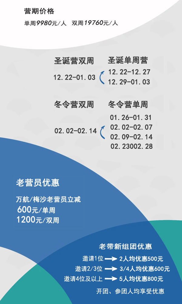 费用不含:• 提前抵达或延后离开的食宿行费用退费须知:• 开营前15天(含)以上申请:全额退款;