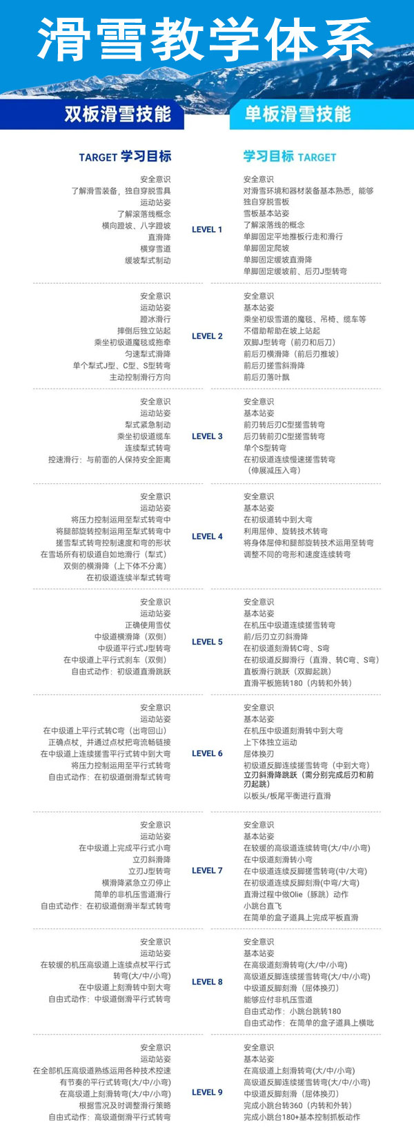 3、场地及教具使用费用:营期间票务费用(雪票、缆车、魔毯等)及雪具租赁费用,包括单板/双板、雪仗、固定器、雪鞋、雪服、头盔、雪镜等雪具;