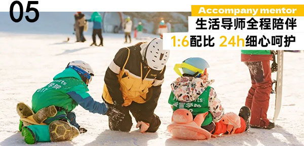 营会导师采用1:6配比,24小时陪伴营员,参与营地生活、学习、活动每个环节,负责孩子们营期内的日常生活、饮食用餐、滑雪装备穿戴。起床叫早、准备日常饮用水、按时就餐、根据温度增减衣物、梳头发、整理着装等日常生活,生活导师都将无微不至、事无巨细。辅助穿脱滑雪服及装备,保证孩子的滑雪舒适和安全。入营前,收走住宿房间内电器等危险物品;参营中,关注孩子的日常生活及身身心健康;结营时,检查孩子的随行物品无遗漏。