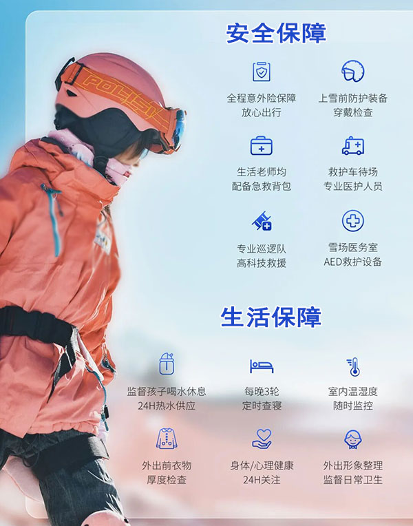 营期内配备滑雪应急小组,雪场内配备医务室、巡逻车,为孩子们在滑雪过程中解决突发情况,确保滑雪安全进行!营期内,生活导师将全程关注孩子身体健康情况及变化,如孩子发烧生病,第一时间做出应对。
