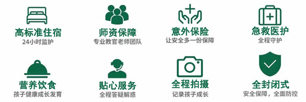 7后勤保障 用餐标准四菜(两荤两素)+1汤+2主食+水果(少数民族单独配餐); 住宿标准准营房6-10人间,军用四件套、独立卫浴空调等; 交通保障正规协议旅游车辆公司大巴和驾龄10年以上经验丰富的老司机驾车; 医护保障营期内赠送有30万意外伤害险,营地内设置24小时医务室,配备有应急军事医疗设备及经验丰富的队医; 安全保障我们组织此项活动的十七余年经验,在活动的每个环节上都能够及时加强安全预防和保障措施,以往夏冬令营做到零安全事故,家长可以达到97%满意度。多年来,我们一直怀揣着热忱的态度和专注的精神!以确保所有活动万无一失! 携带物品清单1、洗漱用品:牙杯、牙刷、牙膏、毛巾、洗发液、沐浴液、浴巾
