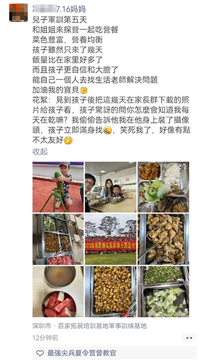 关于我们2015年成立 服务超过3W+学员夏令营机构介绍 深圳尖兵夏令营,是广东省十佳夏令营机构之一,广东卫视《百业看点》栏目组现场采访报道。原中国人民解放军退役士官曾伟冠创办,营地位于深圳大鹏,成立于2015年,隶属尖兵营(深圳)研学文化有限责任公司旗下;截至2024年,训练超过4W+名学员,安全0事故,训练0伤害,意外0出险,成功入选《中国营地教育CCEA夏令营品牌》。 选择理由与众不同,方能彰显特色24小时随时探营参观训练亲子视频互动分享 全程可视化保障 食宿安全6菜I汤,营养均衡 作息时间遵守部队一日生活制度告别拖拉磨蹭,提升时间观念06:30-07:00 洗漱、整理内务
