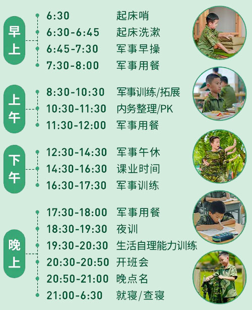 由专业军事训练教官、青少年素质拓展师、心理健康咨询师,共同组成核心顶尖师资团队!教学年限平均五年以上,拥有丰富的训练经验和青少年教育经验,文明带兵,科学带兵,以情带兵,思想过硬本领过硬,素质过硬,与学员全天候同吃住,以身作则,时刻关注学员动态并及时解决相关问题。