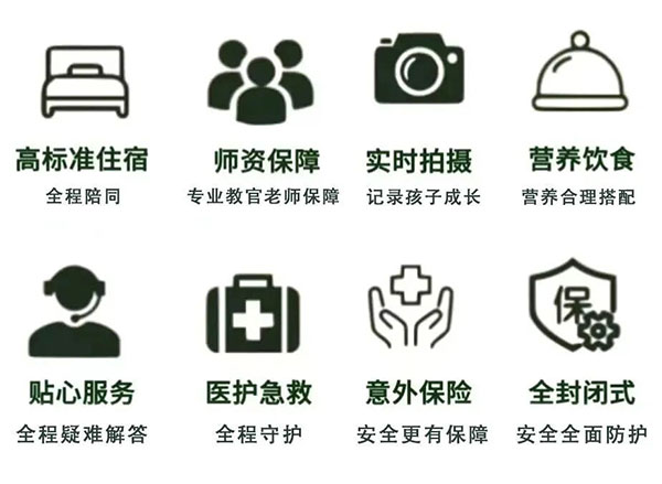 ✦ 住宿标准:封闭式,男女分开管理,8-10人间,配有洗澡间、热水、空调;教官同吃住,住宿安全可靠;